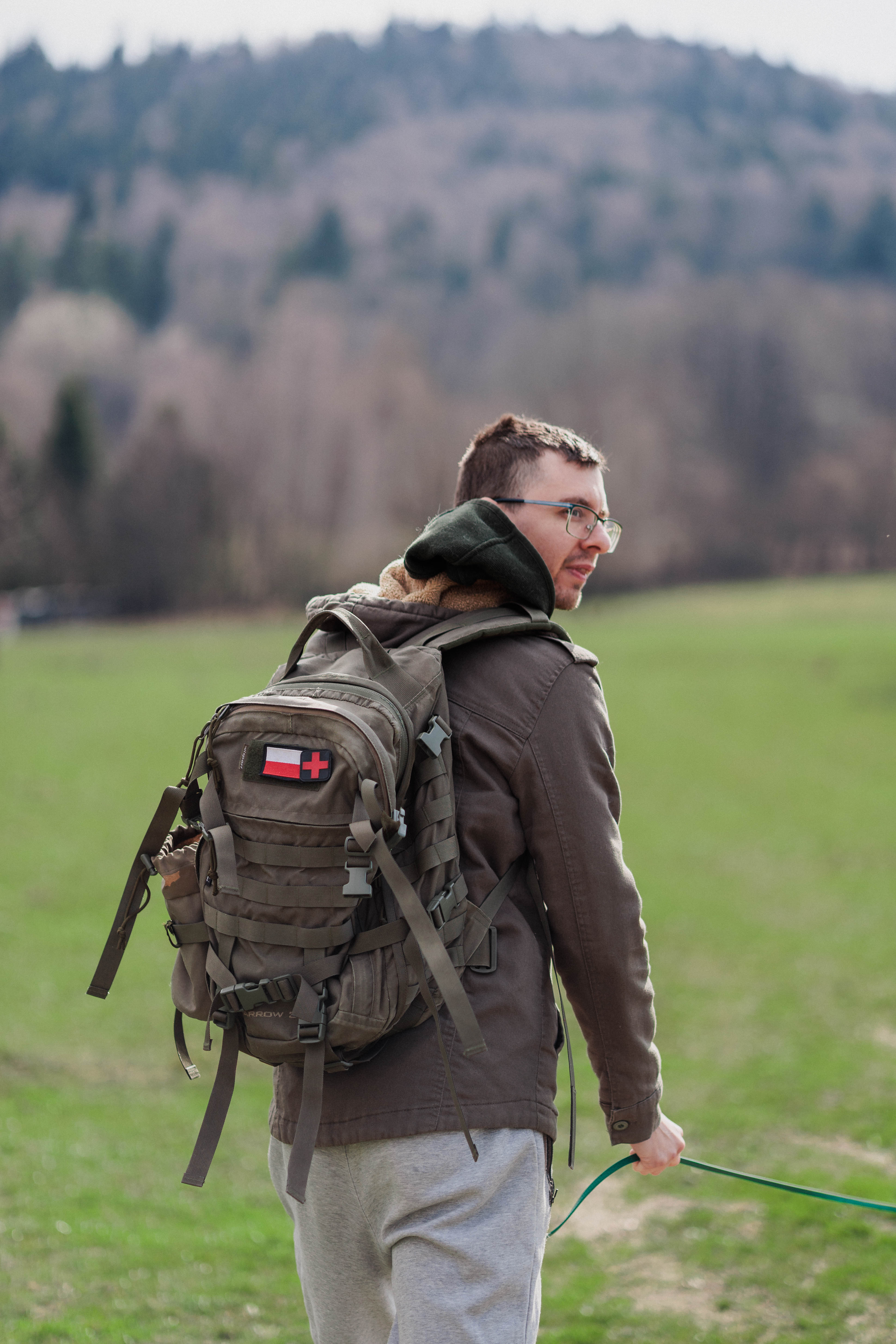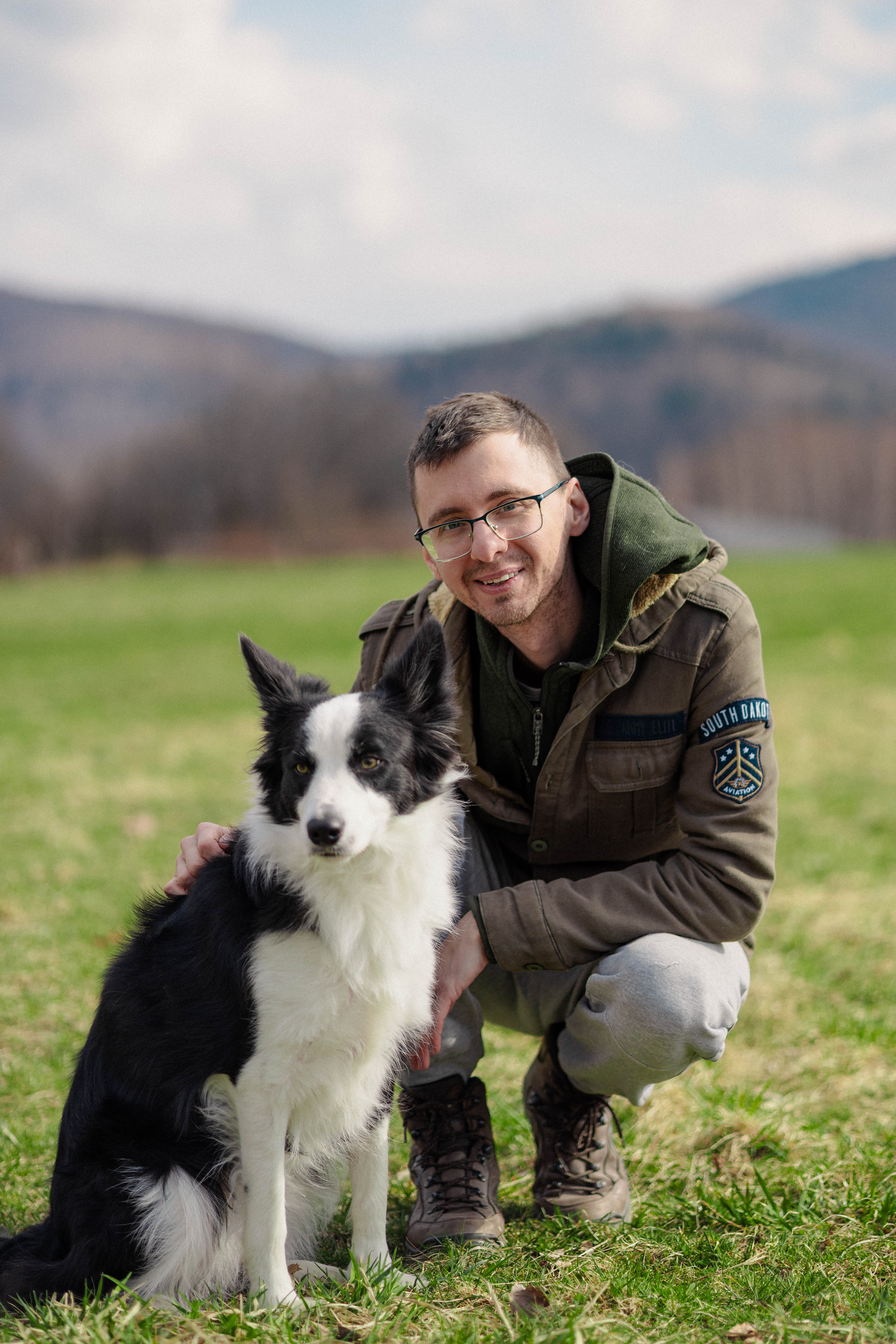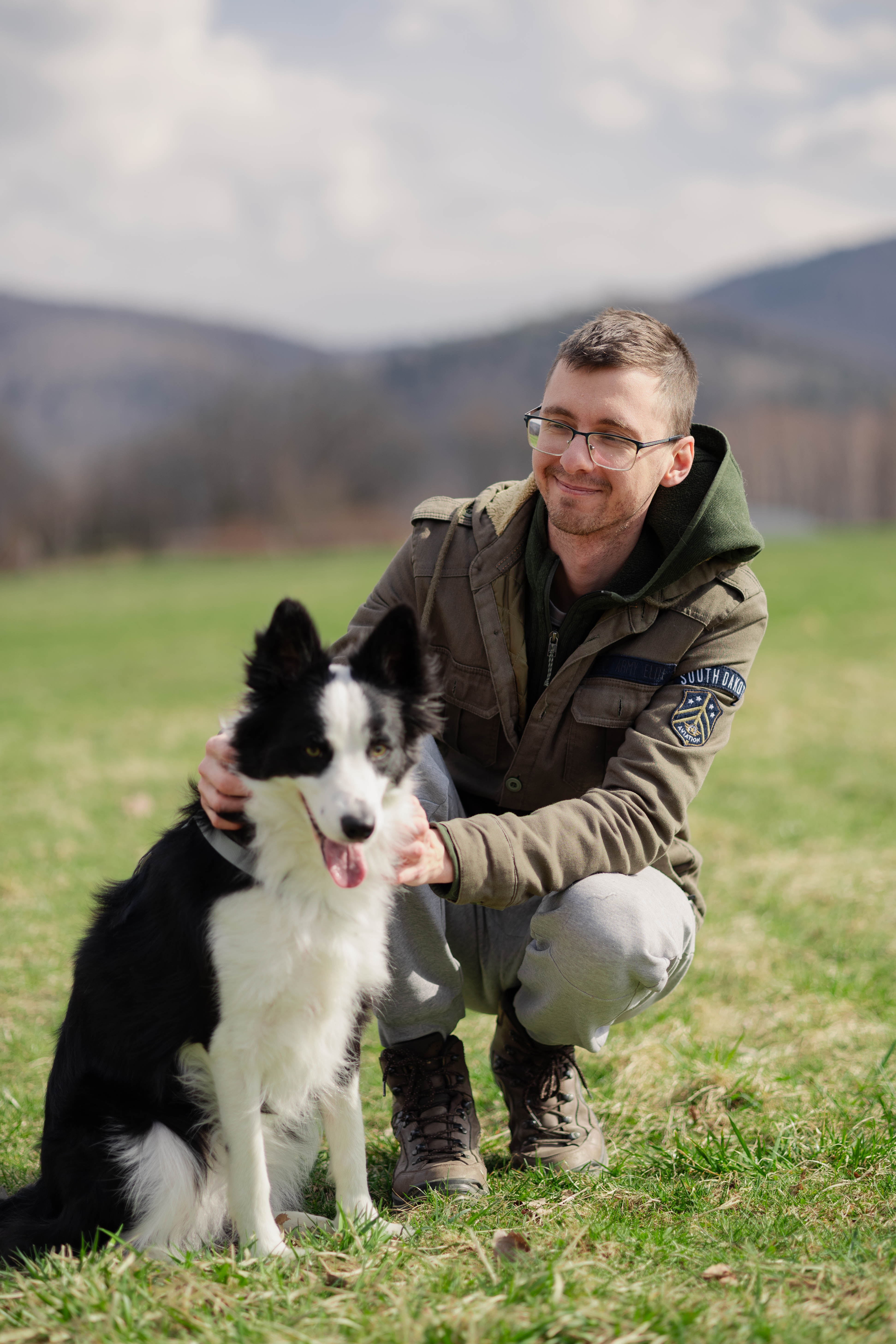 Cozy family of Rafal and Nova photographed in Beskidy mountains. Cloudy day with very warm hearted duo, Nova is a charming and incredibly smart dog. They are great travel companions to each other.
